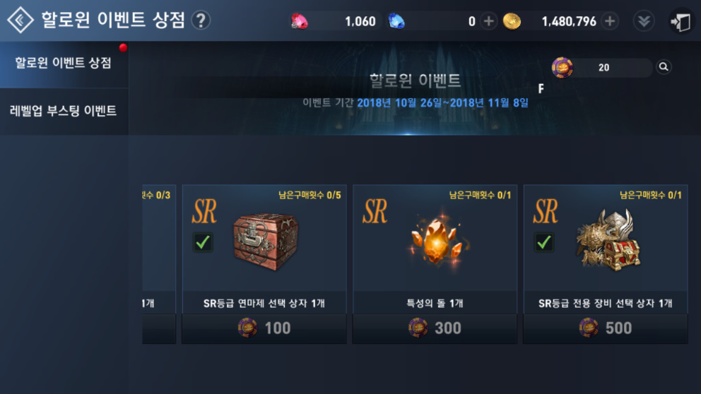 할로윈 코인으로 이벤트 상점에서 여러 아이템을 구입할 수 있는데요.