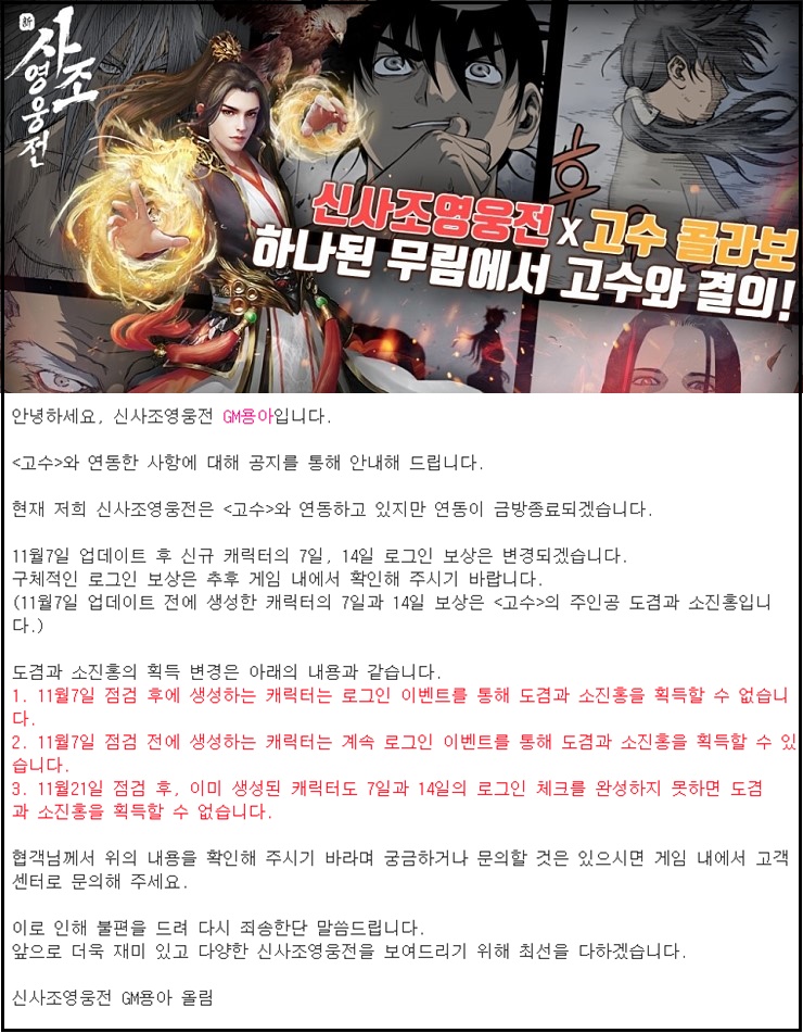 신사조영웅전이 고수랑 콜라보를 한다는 소식을 듣고 시작했습니다!!