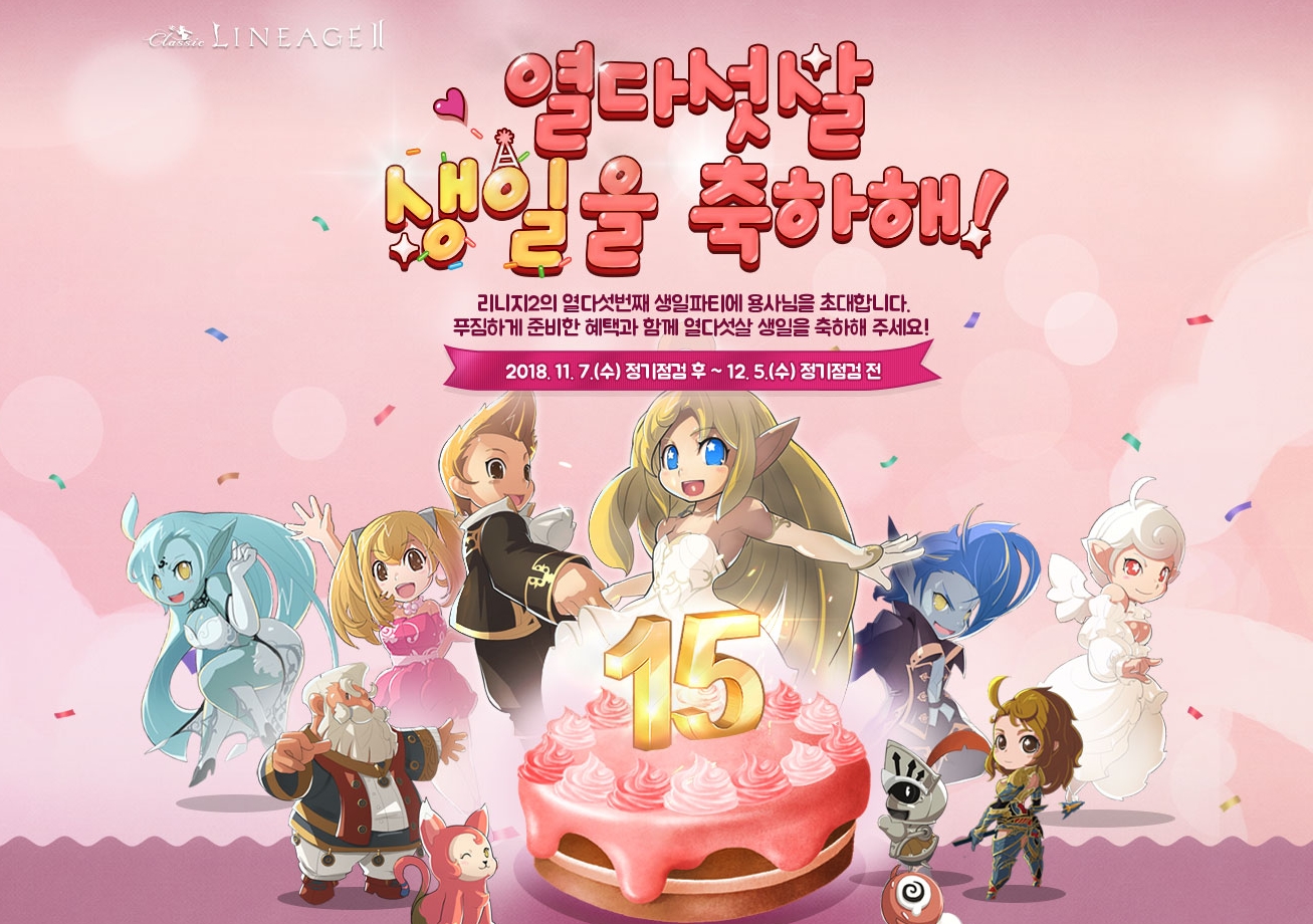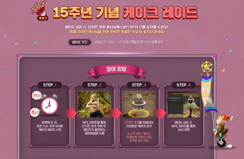 15주년 기념 케이크 레이드도 있고 아이템 지원 보상 등도 있어서