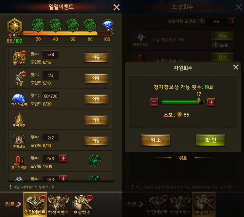 매일 해야하는 것들을 플레이하면 포인트가 채워지게 되는뎅?