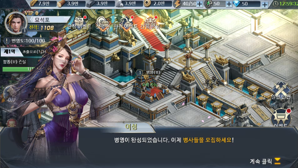 게임은 SLG장르라서 군대가 자동으로 서로 싸우는 식으로 진행되더군요.