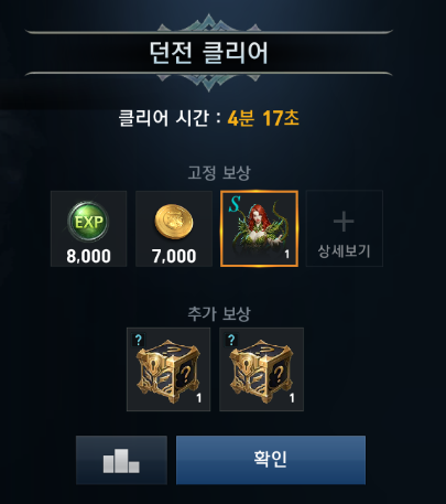 보상도 나쁘지 않은 편인데, 클리어만 하면 고정 보상으로 경험치랑 돈, 추가 보상으로 상자 두개도