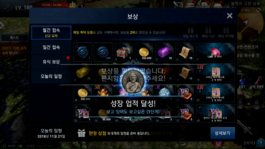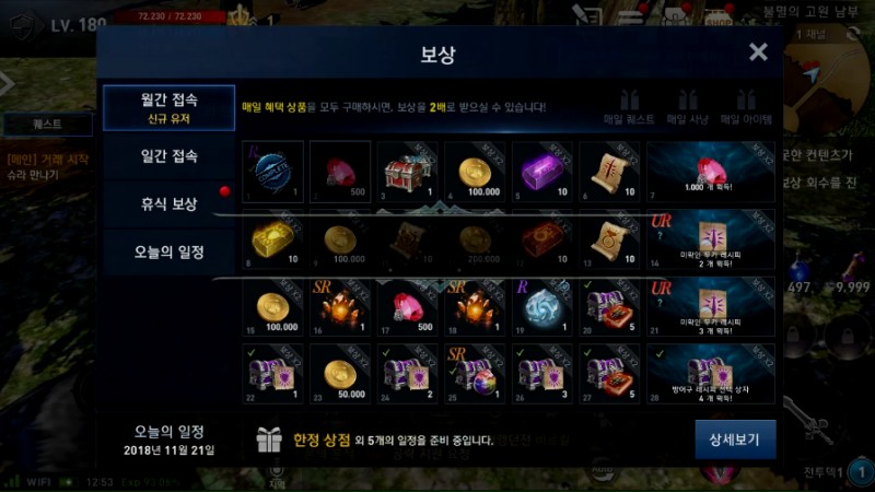 들어갔더니 일일 출석 이벤트 하고 있기에 일단 출석 찍고 아이템을 받은...