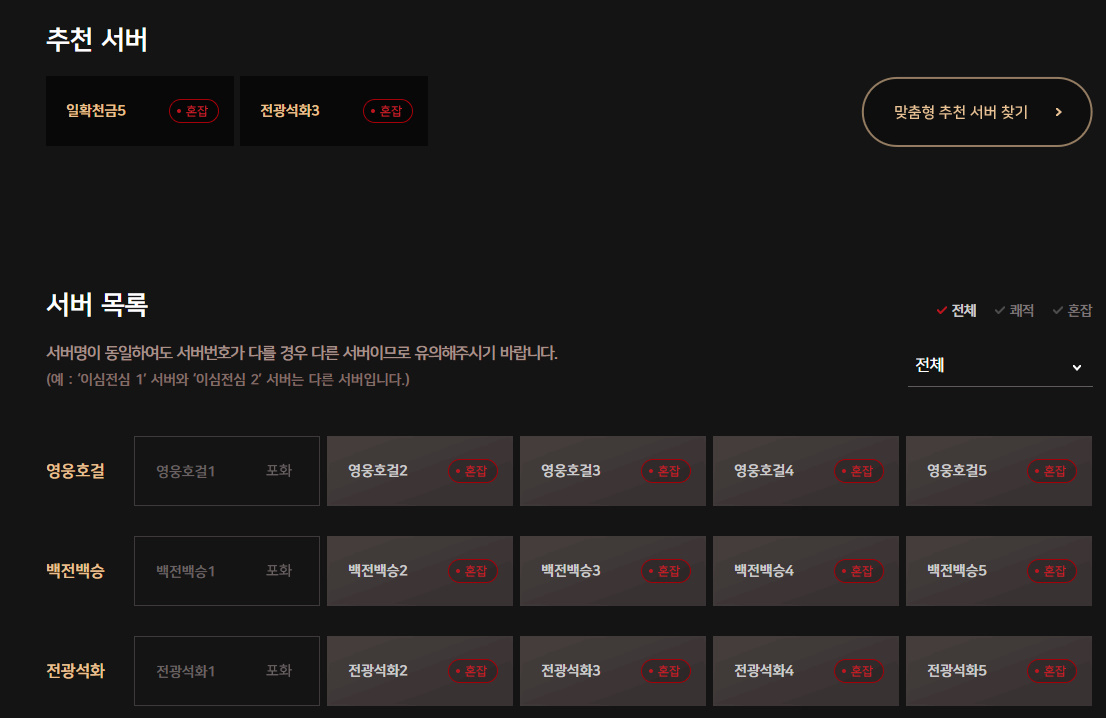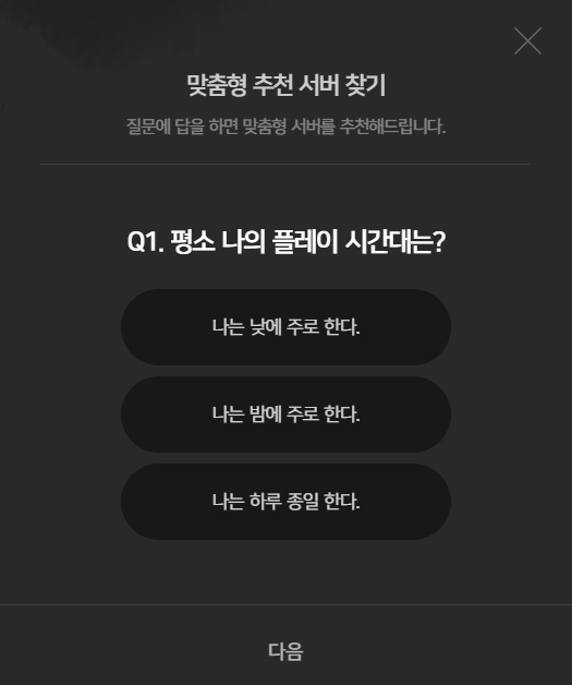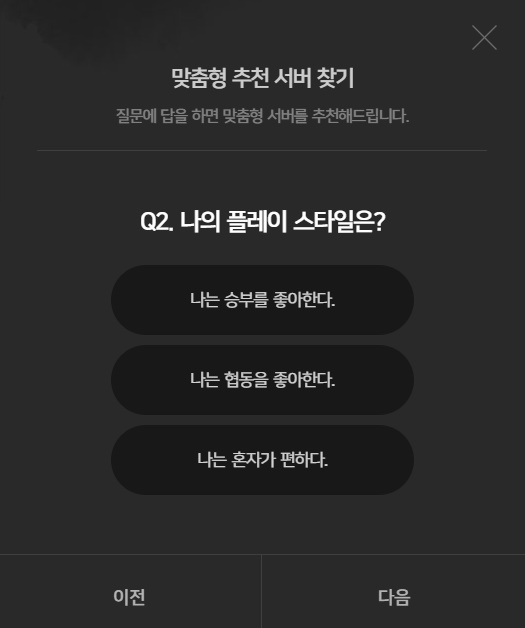 서버전섬 오른쪽에 맞춤형 서버 찾아주는 기능이 있어서 저도 해봤는데