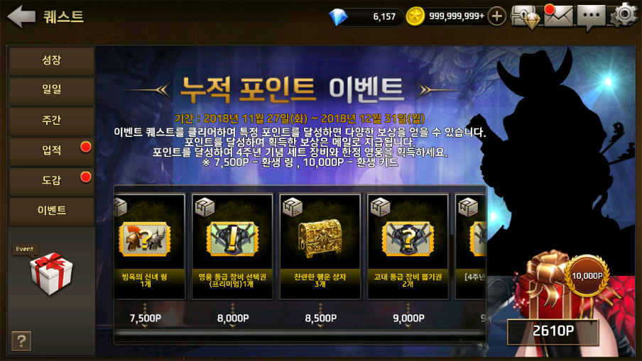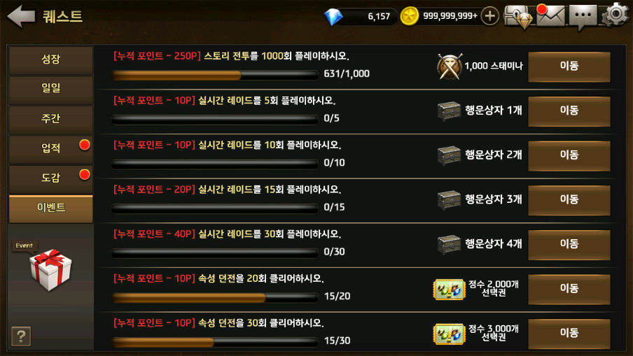 그냥 단순히 속성 던전, 스토리 던전, 캐릭터 강화를 진행하면 자동으로 포인트가 쌓이게 되는 것!
