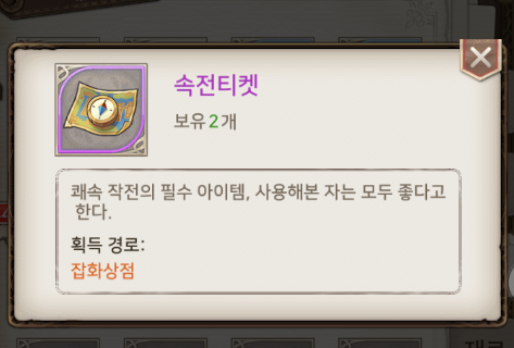 여담으로 속전티켓 아이템에 대한 설명이 조금 압권인데 사용해본 자는 모두 좋다고 한다는군요 ㅋㅋㅋ