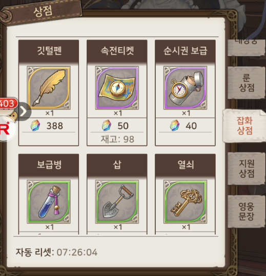 속전티켓은 상점의 잡화상점에서 보석 50개를 주고 구매할 수 있습니다.