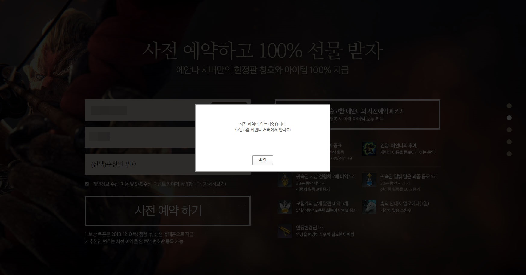 사전예약 보상으로 인게임 아이템들 다양하게 지급하고