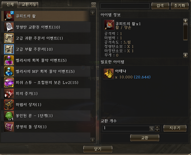 무슨 아이템을 팔고 있나 했더니 큐피트의 활이라는 걸 팔고 있더라고요.