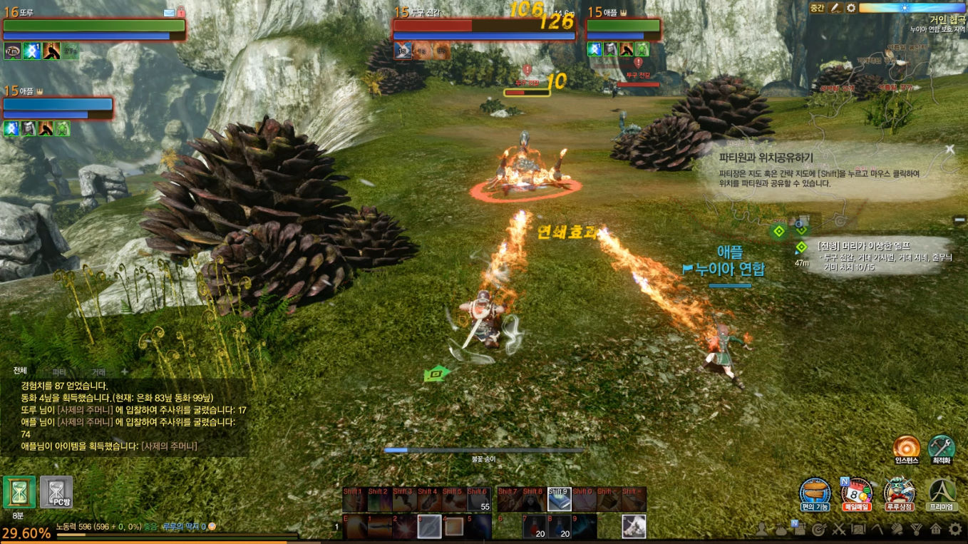 혼자 하다가 필드에서 같은 퀘스트 하는 분이랑 파티해서 하니까 사냥 속도 엄청 빨라지더라구요..ㄷㄷㄷ;