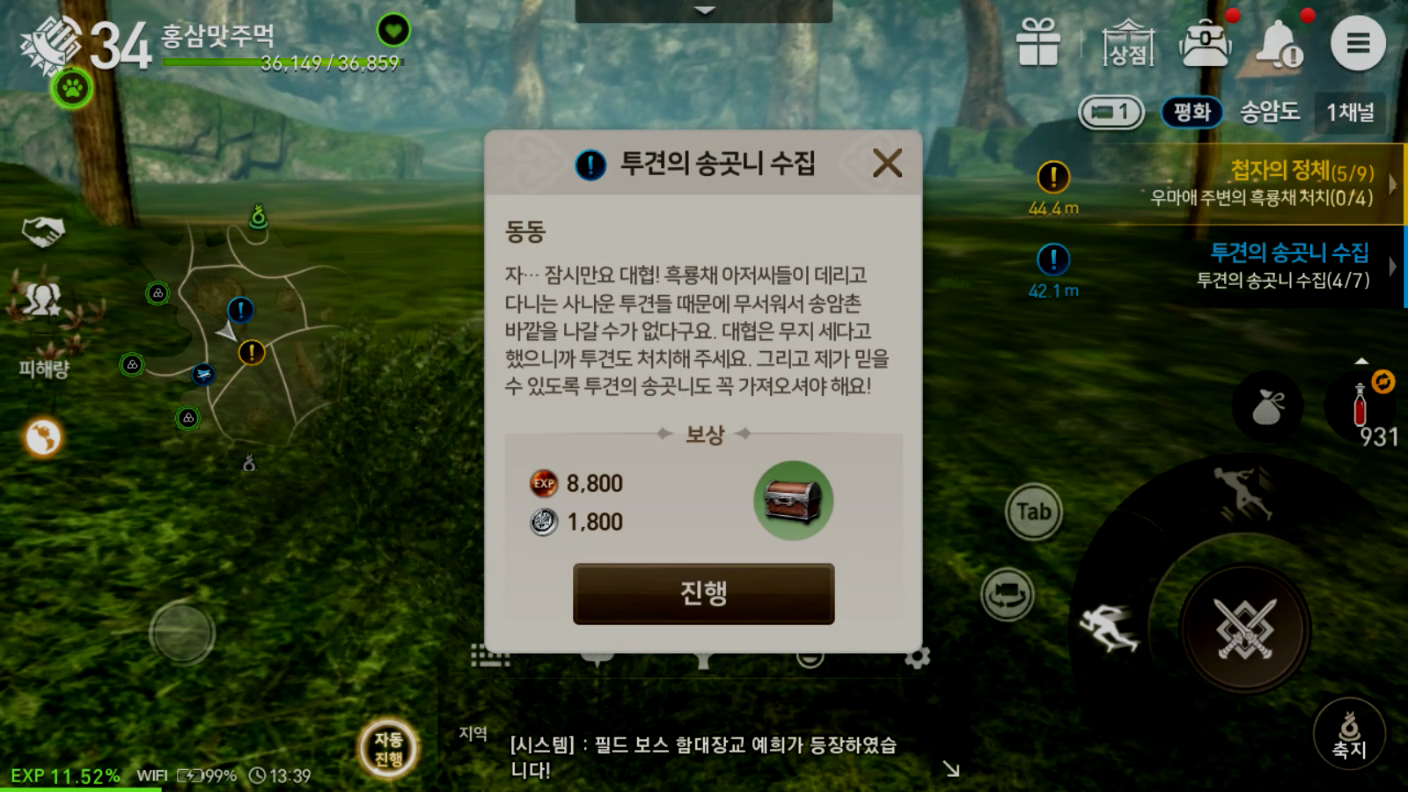 일일퀘스트들도 보상이 좋은 편이라서 틈틈히 해두면 빠른 레벨업이 가능합니다.