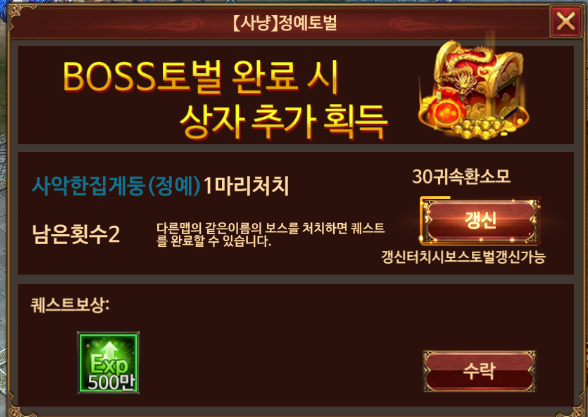 해당 보스를 잡기 싫으면 30귀속환을 써서 갱신을 할 수도 있는데,