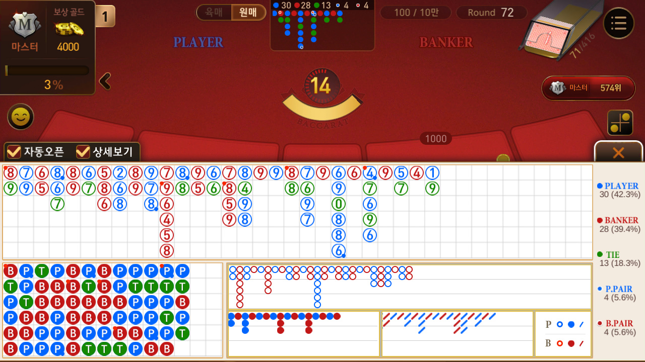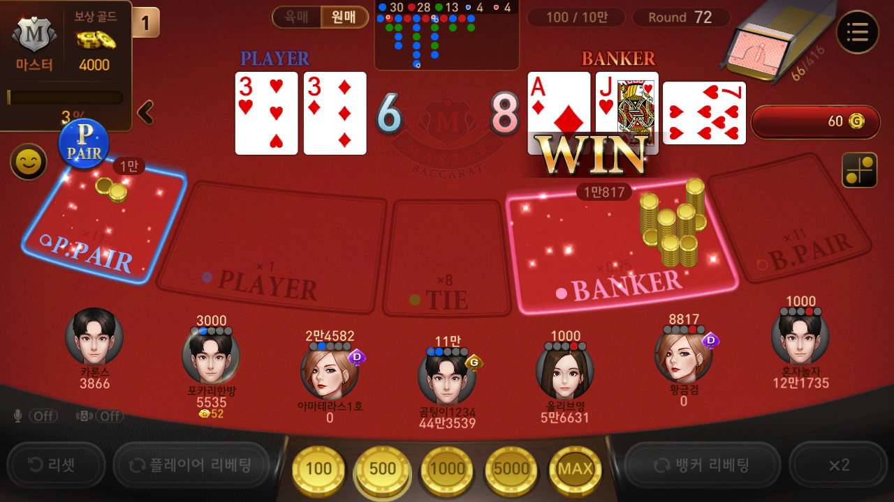 빨강카트붕붕 이번에는 성공 할 뻔 했는데 작성일시 : 2018. 12. 19 (21:28) 조회 : 2,356 / 댓글 : 1 오늘 일마치고 회사컴으로 넷마블 바z카라 했는데첫판부터 뱅커가 이길 확률이 높게 잡혀있더군요쌔 하긴 하지만 그래도 플레이어한테 배팅을 진행했습니다. 근데 저 말고 플레이어 한테 배팅 한 사람들이 많더군요스코어 보드는 뱅커가 이길 확률이 높다고 나와있었지만그래도 배당률이 플레이어가 1:1이라서 그런지 사람들이 많이배팅한거 같더군요 하지만 결과는 역시 스코어 보드처럼 뱅커의 승리!!아오... 막상 지고 나니까 맨날 후회하고있습니다..;차라리 뱅커에 걸껄....ㅠㅠ다시 복구하러 가야겠군요 ㅋㅋㅋ 2추천 글쓰기스크랩 신고