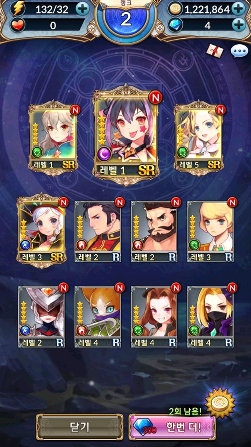 처음 들어가면 200다이아 주고 그리고 첫 번째 장을 클리어 하면 200다이아를 주길래