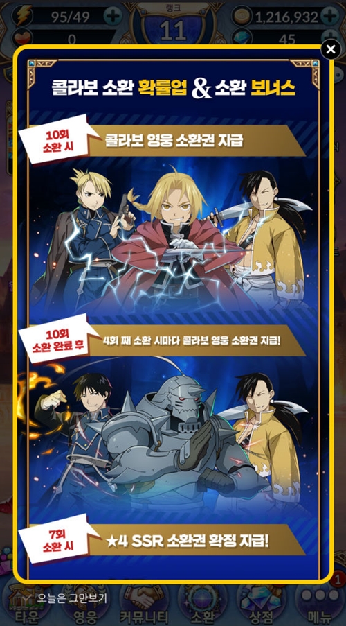 강철의 연금술사 캐릭터들이 등장 한다고 하더라구요.
