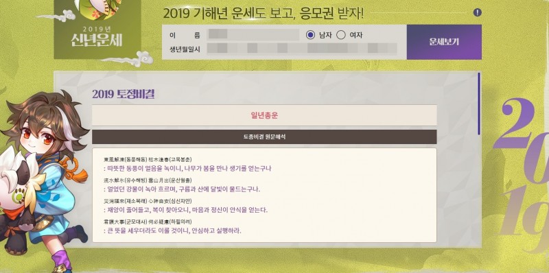 그리고 본격적으로 운세를 한번 봤더니 대체적으로 올해 운세가 잘풀리는 운세더군요