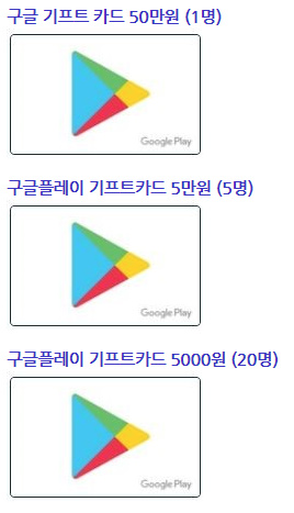 추첨으로 1등에게는 50만원의 구글기프티카드를, 주고 이외에도 많지만