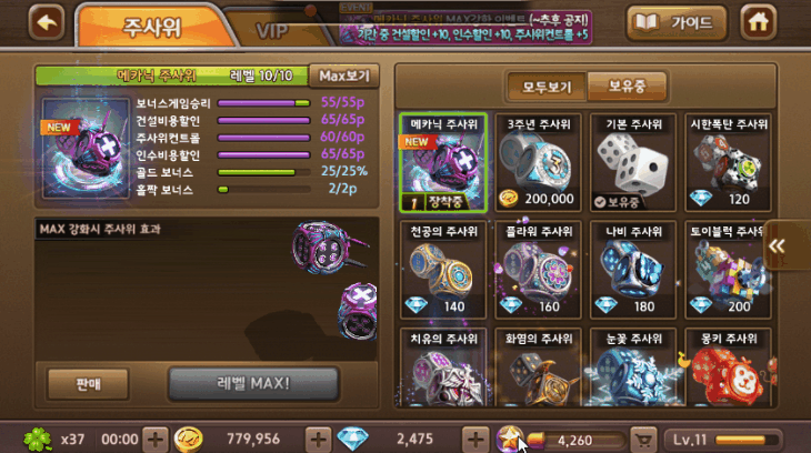주사위 사고도 다이아 2400개 넘게 있어서 어떤거 또 살지 행복회로 돌아가고 있죠!