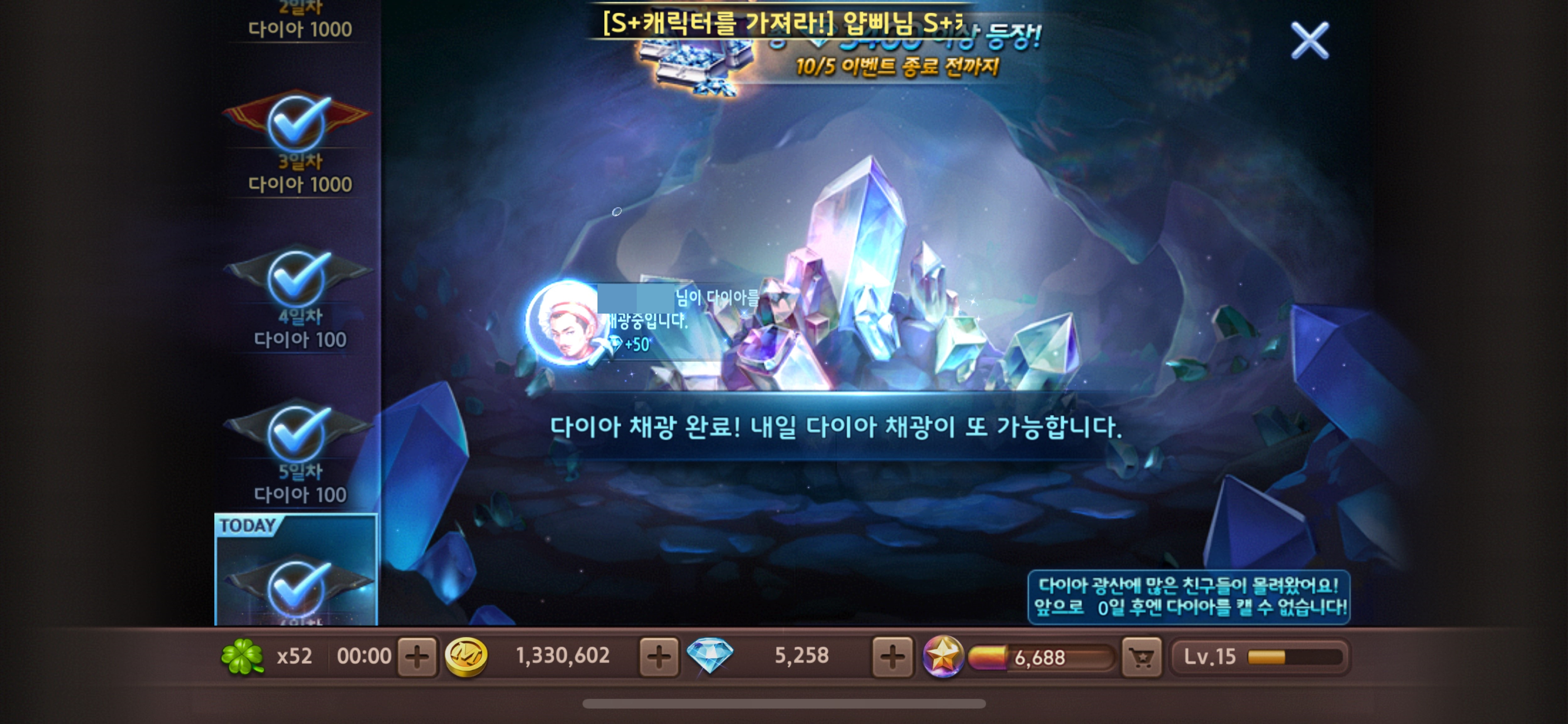 특히 7일 출석이벤트로 나온 다이아 광산 출석부는 진짜베기 이벤트이죠.