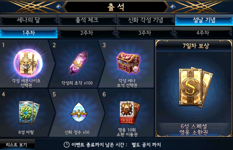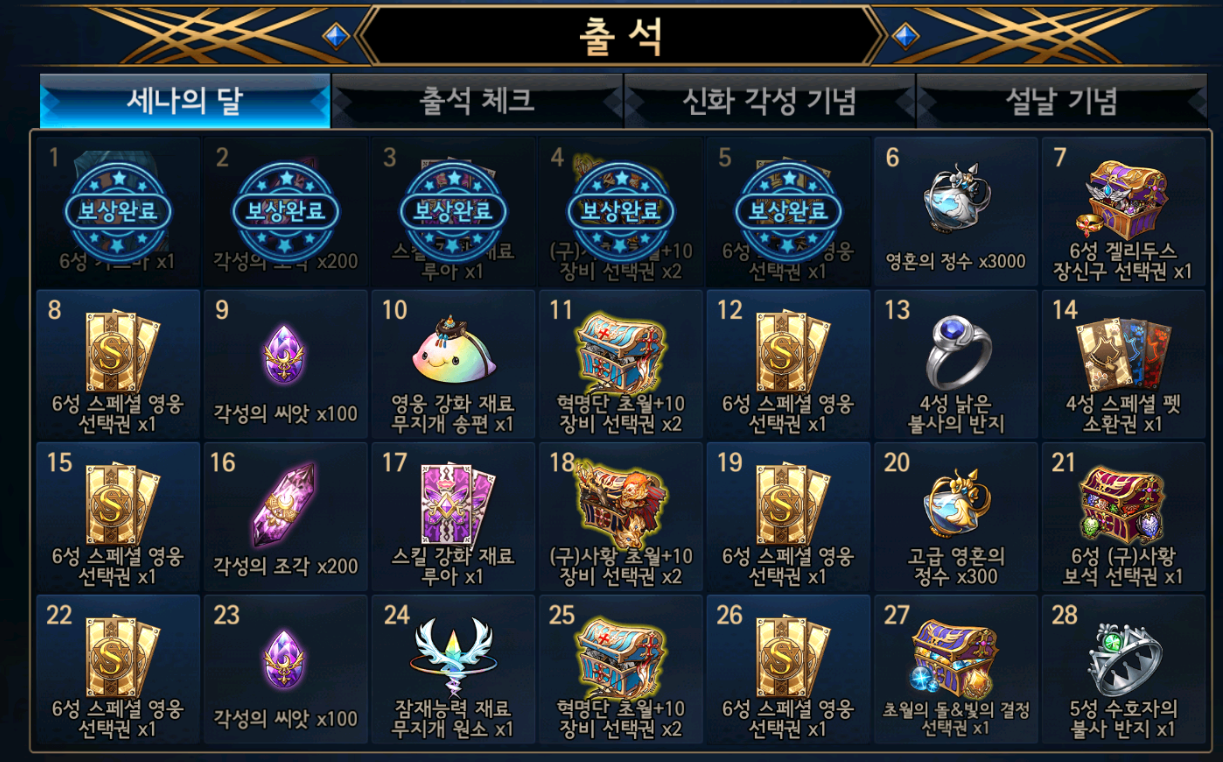 다 주는 건가 했었던...특히 세나의 달 28일자 아이템은 5성 수호자의 불사반지를 주는...