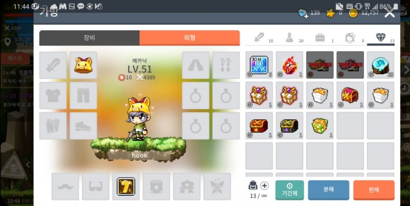 친척 동생들이 메이플 하고 싶다고 해서 폰으로 깔고 기존에 있던계정으로