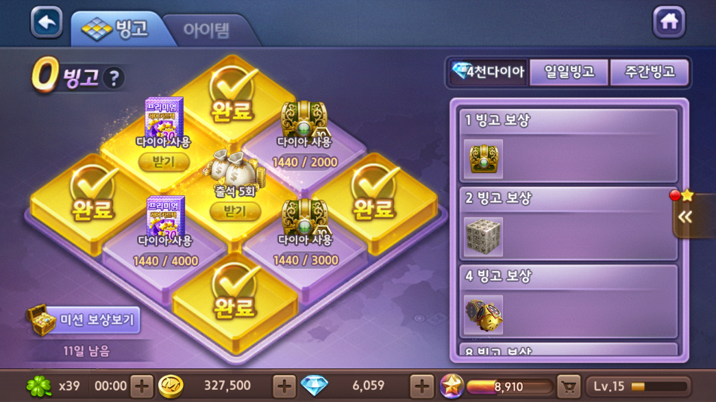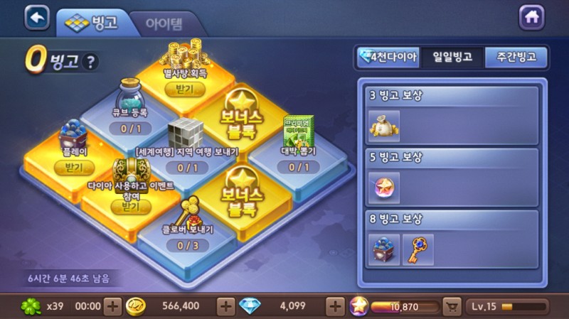 온나다나와 거의다 왔다!! 작성일시 : 2019. 02. 09 (17:57) 조회 : 1,931 / 댓글 : 0 이번 모두의마블 빙고이벤트 참여하구있습니다!안영미 나오는 영상보고 복귀 했는데 역시 모마만큼 시간 잘가는 게임도 없는 것 같아요.다이아 4천개 전부 받았고 이제 고스란히 4천개 다시 쓰면!?빙고판 완성!4빙고 보상 황금돼지 주사위 너무 가꼬 싶었는데 흐흐 그리고 일일빙고랑 주간빙고도 있습니다.오늘 일일 빙고 미션은 지역 여행 보내기 이네요.저거 달성 하기 위해서 또 폭풍 달려야 겠습니다. 2추천 글쓰기스크랩 신고