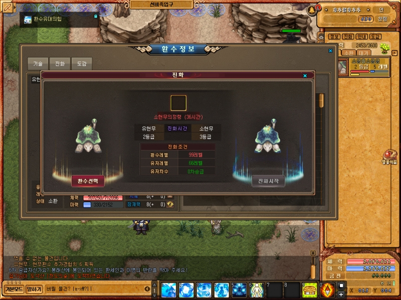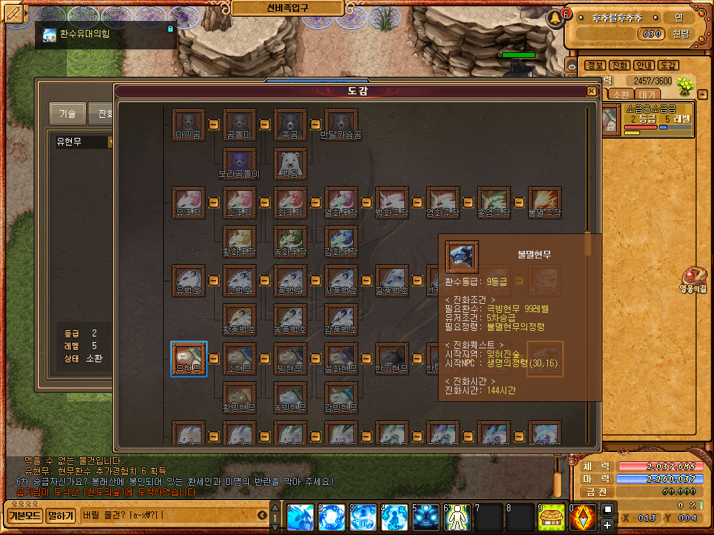 도감을 보니 더 많은 환수들이 존재하여, 진화를 시키고 싶게 만들더군요!!