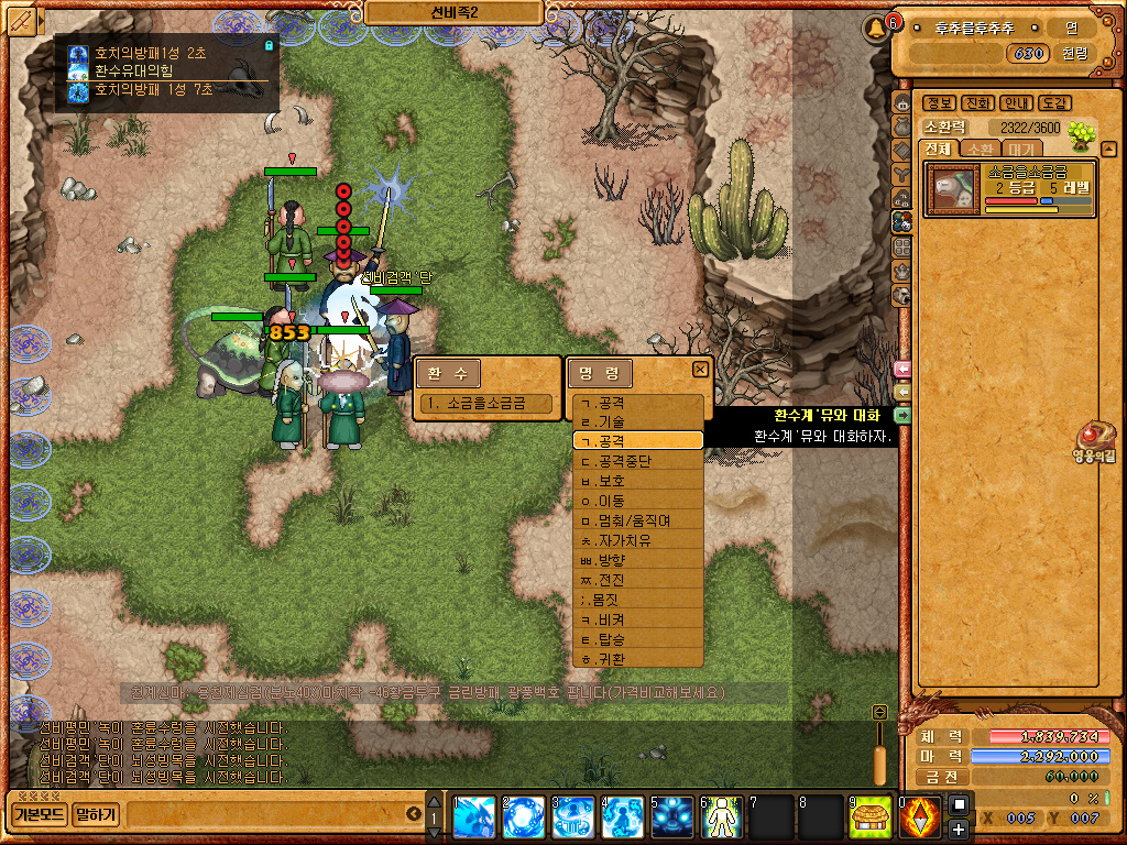 공격명령을 내리면서 레벨업을 하고 있습니다.