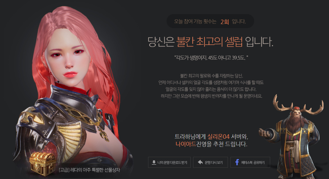 무엇때문에 저 캐릭터가 뽑혔는지는 모르겠지만...일단 1회차에 붙었으니
