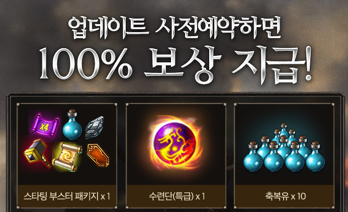 지금 미리 업데이트 사전예약을 진행하면 스타팅 부스터 패키지와