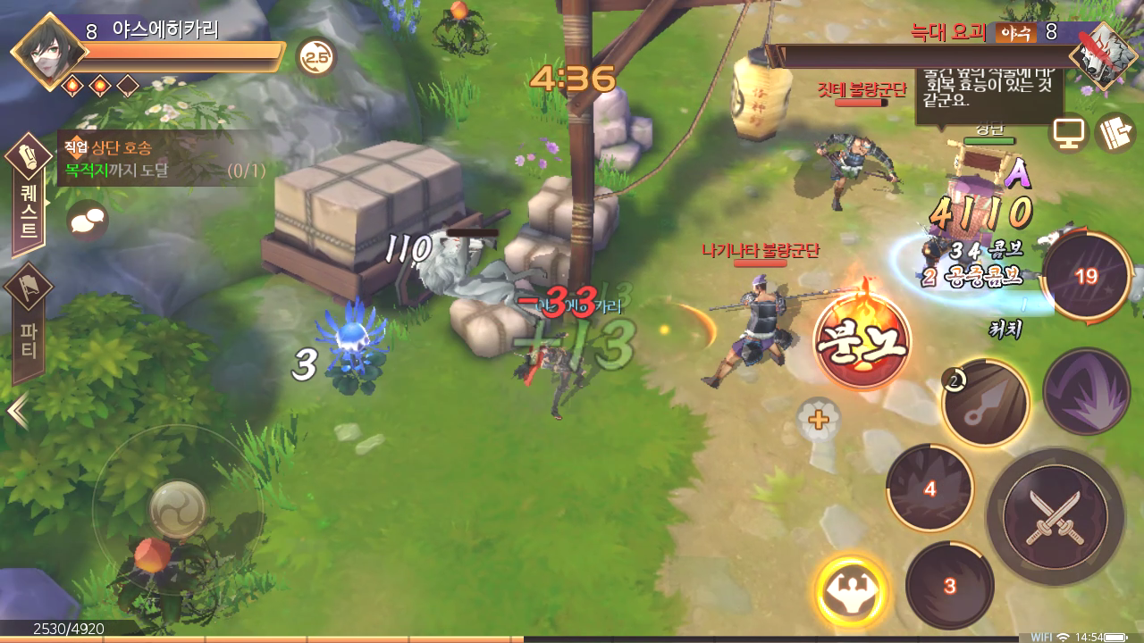캐릭터는 닌자로 플레이하고 있는 중인데,