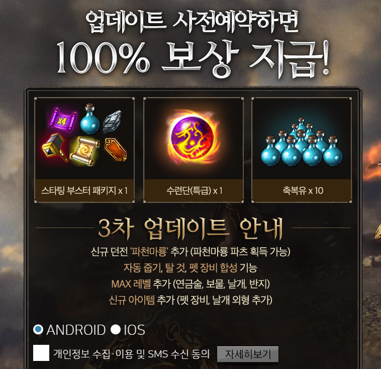 정소현 미르의전설2 리부트 3차 업데이트 사전예약!! 작성일시 : 2019. 03. 18 (14:41) 조회 : 1,831 / 댓글 : 0 미르의전설2 리부트가 벌써 3차 업데이트를 진행하고 있습니다. 파천마룡 레이드 추가 외에도 자동줍기, 탈 것 펫 장비 합성 등등다양한 기능이 추가됩니다. 저는 미르의전설2 리부트를 오랬동안 즐기고 있는 유저로써 파천마룡 레이드 추가가 가장 기대가 되는것 같습니다 ㅎㅎ 3환생까지 찍고 매일 매일 오토 던전도 꾸준히 돌아주고 있습니다. 특히 배수경험족자를 사용하여 4배의 보상을 받으니 금방 4환생을찍을 수 있을 것 같습니다. 2추천 글쓰기스크랩 신고