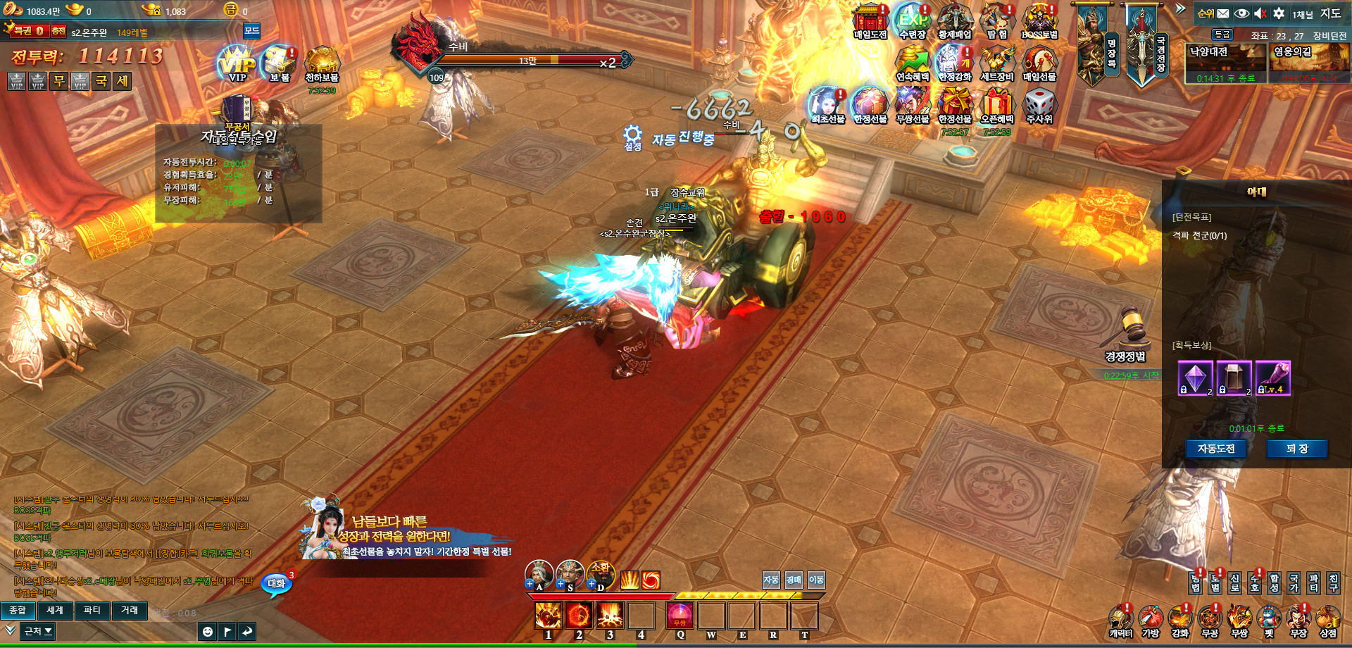 쵸풍신 일하면서 하는데 은근 꿀..잼.. 작성일시 : 2019. 04. 02 (18:25) 조회 : 1,720 / 댓글 : 1 원래 일하면서 게임 하는 거 신경쓰여서 잘 안하는 편인데이번에 아는 직원분이 알려준 대장부온라인..일단 켜 두기만 하면 금방 쑥쑥 크는데 그래픽도 좋고 은근 할만하다는 이야기에 오늘 한번 해봤습니다 ㅎㅎ진짜 딱 켜두기만 해도 알아서 크는게 점심시간이나 시간날 때 몰래 몇개 만져 주니깐 쑥쑥 크는 ㅋㅋ육성하는 맛이 좋아서 하고 있는데, 이게 또 한번 건드려 주면 할게 많은...오늘도 하다가 일 못할 뻔 ㅠ 2추천 글쓰기스크랩 신고