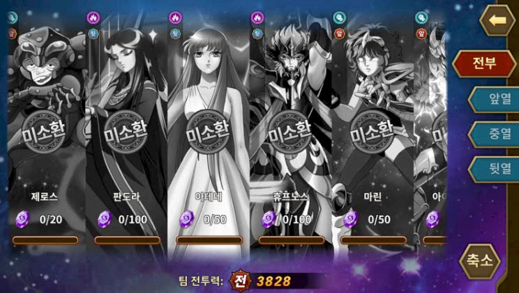 성투사들 모으는 게임인데 오...아테네에 마린, 판도라까지 ㅋㅋㅋ