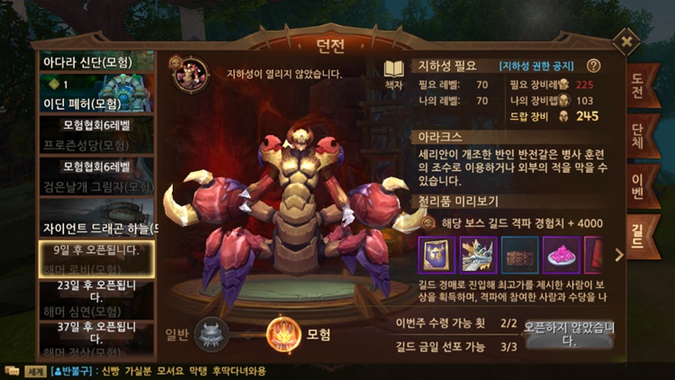 자몽짱 모험도 껌이겠군 작성일시 : 2019. 04. 03 (19:31) 조회 : 1,629 / 댓글 : 1 오크 길드 지하성 모험 난이도가 새로 나왔는데자이언트 드래곤 하늘은 당장 갈 수 있고...해머 로비랑 심연, 정상은 차차 열리더라구요. 아라크스는 단체 지하성갈 때 한번 봤는데여럿이서 패니깐 뭐 쉽더만요ㅎㅎㅎ길드 지하성도 인원 많이 참여할 수 있어서 모험 난이도도 쉬울 것 같습니다.9일 뒤에 바로 도전해봅니다 후후훗... 2추천 글쓰기스크랩 신고