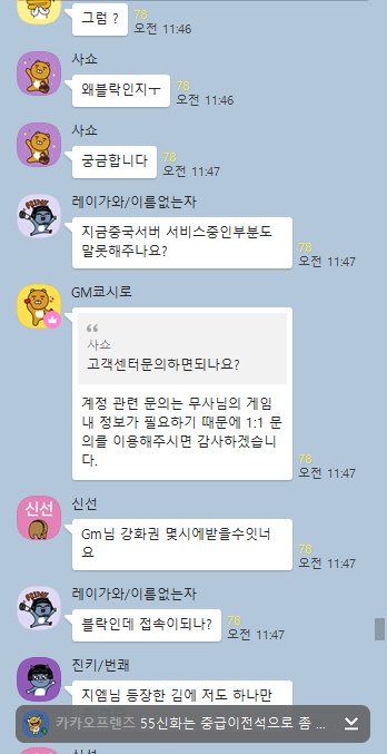GM대기 카톡방이 있는데 아직도 엄청 활발함.. 오류나 버그같은거