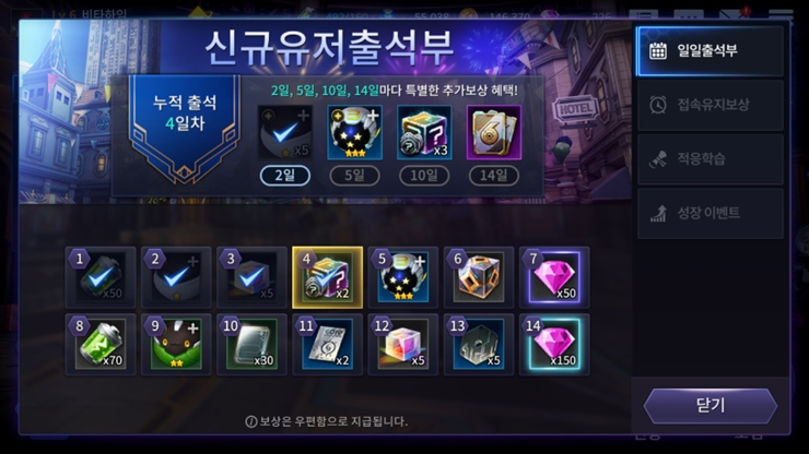 이번에 꼬박꼬박 출석해서 보상 챙기면