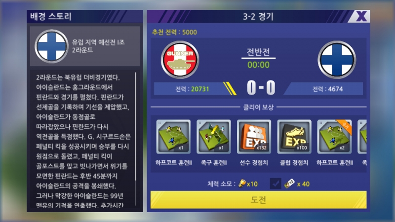 스테이지도 많고, 스테이지에서 나오는 재료로 선수 강화도 가능 합니다.