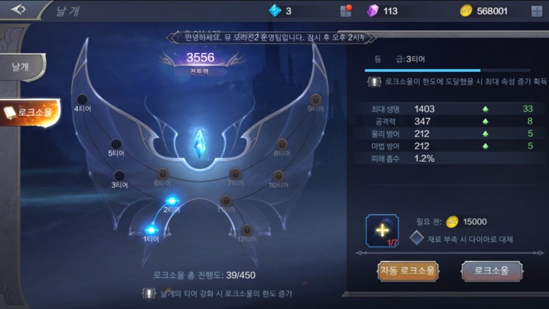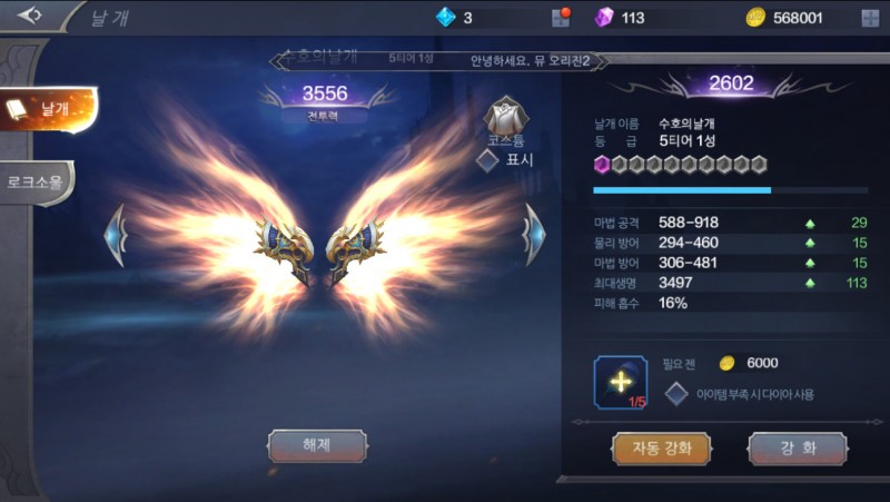 이번에 로크소울이라는 게 생겨서 깃털을 예전처럼 쓰면서 전투력을 올릴 수 있게 됬음!!