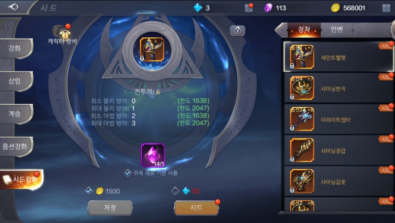 이걸로 시드 강화라는 걸 시켜서 아이템 능력 수치를 변경할 수 있게 됬음!!