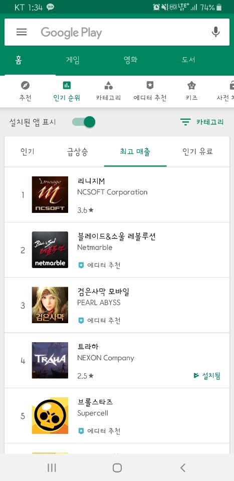 최고 매출 순위에도 올라와있더군요.