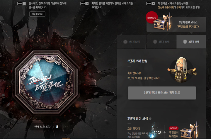 보니까 출석만 꾸준히 해도 3단계까지 완료하고 보상 받을 수 있겠더라구요..ㅋㅋ