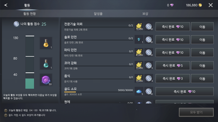 계속 매일 단위로 이것저것 하며 보상도 받고 행동력 노동력 포션도 받을 수 있죠!