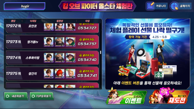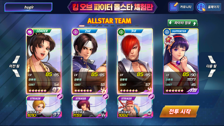 해보실 분들은 구글플레이 가셔서 킹오파 올스타 체험판 해보시길