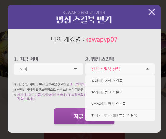 이번에 2019감사 기념 이벤트로 레벨점핑에 변신 스킬북 신규/복귀 용사패키지 등
