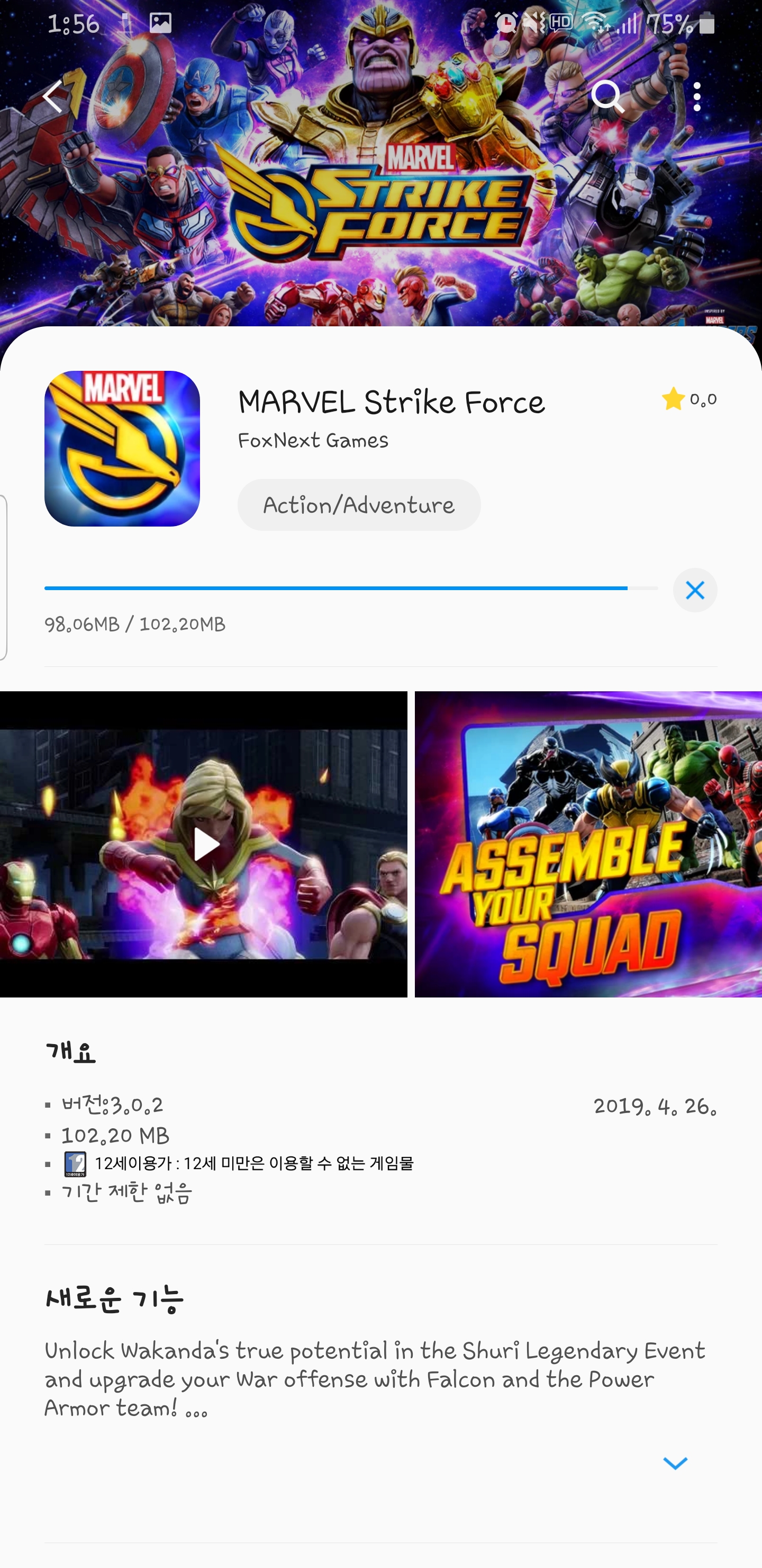 오, 갤럭시스토어에서 마블 스트라이크 포스 런칭했네요.