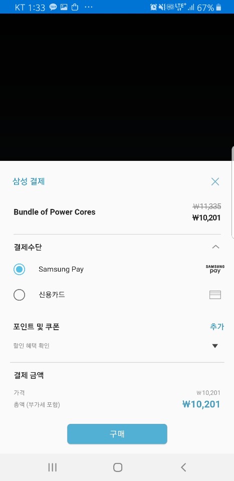 아이템 결제 시에 10% 할인하는 프로모션도 진행 중이죠 ㅎㅎ
