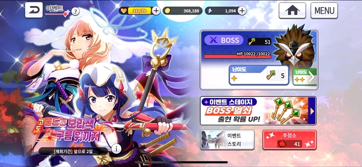 이벤트 스테이지랑 보스랑 잡고 잇습니다.