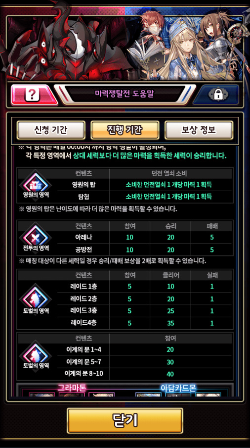 이 마력 코인으로 태초 다이서 강화, 소환 재료를 살 수 있어서 무조건 해야하는 컨텐츠죠.