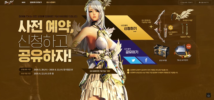 블소 온라인 사전예약을 받고 있는데요, 기념의상과 악세서리, 보석함과 보석망치를